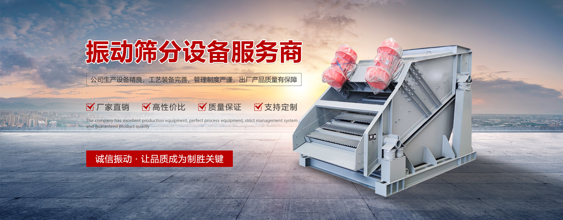 新鄉(xiāng)市誠(chéng)信振動(dòng)設(shè)備有限公司是國(guó)內(nèi)生產(chǎn)振動(dòng)設(shè)備及礦山機(jī)械設(shè)備的生產(chǎn)廠家,公司集研發(fā)、 設(shè)計(jì)、生產(chǎn)、 銷售為一體化,注冊(cè)資金5800萬(wàn)元,職工500余人,技術(shù)人員80余人。公司位于河南省新鄉(xiāng)市小冀經(jīng)濟(jì)開(kāi)發(fā)區(qū),占地8萬(wàn)平方米,建筑面積6.8萬(wàn)平方米。并通過(guò)了ISO質(zhì)量體系認(rèn)證,歐盟使用產(chǎn)品強(qiáng)制性的CE認(rèn)證。公司的主要產(chǎn)品有系列振動(dòng)電機(jī)、振動(dòng)篩、多元環(huán)保篩、彈性環(huán)保篩、振動(dòng)給料機(jī)、振動(dòng)輸送機(jī)、破碎機(jī)、皮帶機(jī)、斗式提升機(jī)、鏈斗輸送機(jī)等多種產(chǎn)品及其配件,共計(jì)20多個(gè)系列,400多種規(guī)格。產(chǎn)品廣泛用于冶金、礦山、煤炭、化工、建材、電力、路橋工程等行業(yè)。 [了解詳情]